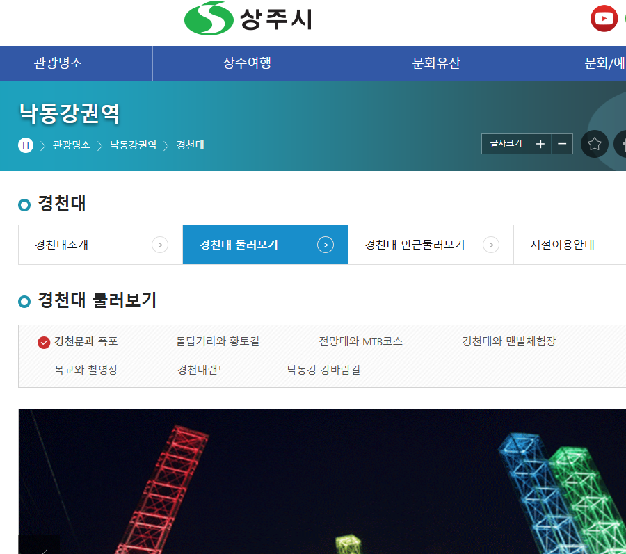 아래 링크를 누르시면 상주시에서 운영하는 경천대 소개 페이지로 연결됩니다.