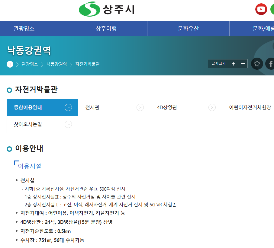 - 운영시간 : 전시실 09:30 ~ 17:30(자전거체험장 10:00~17:00)